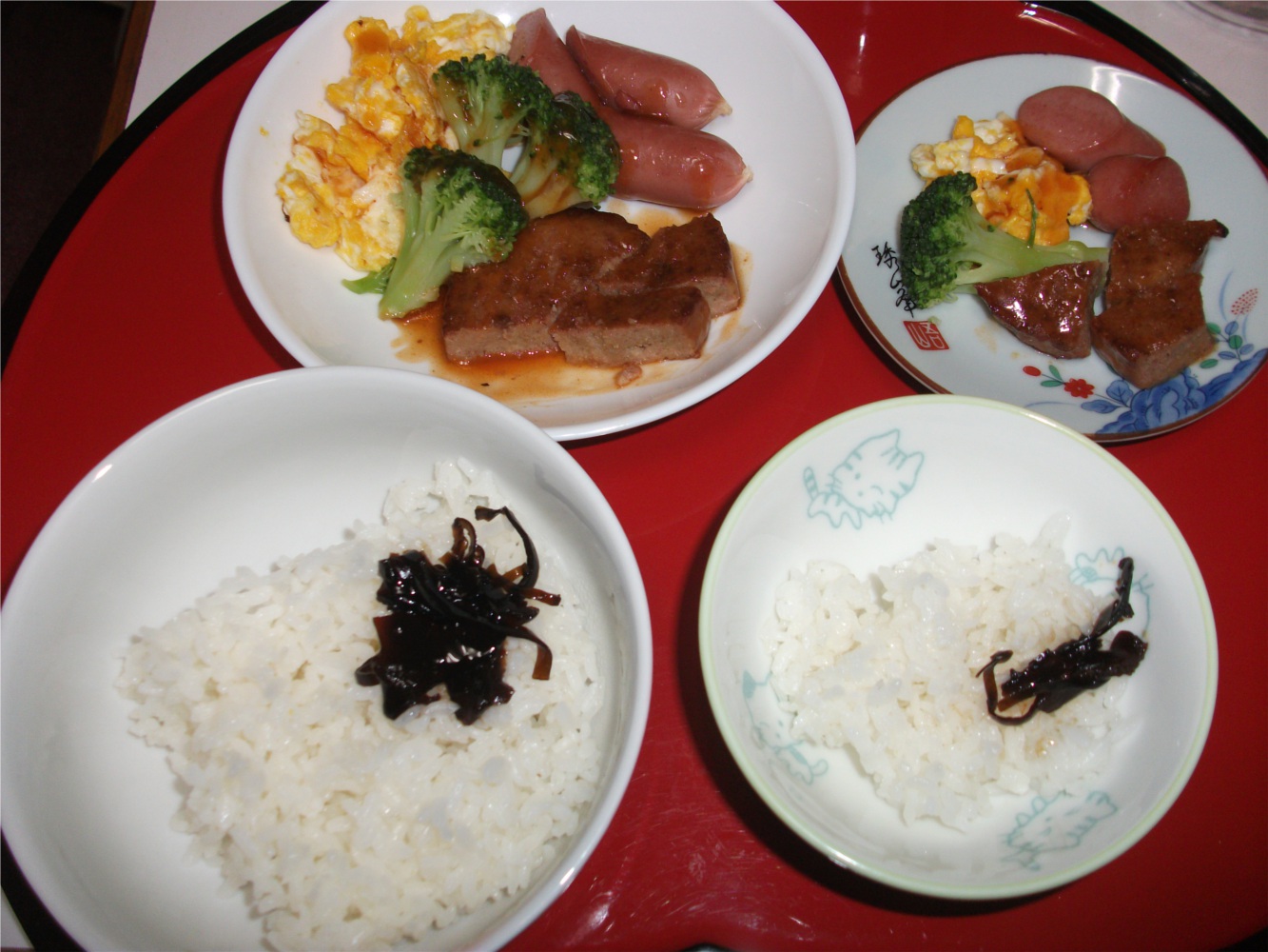 今日のお昼ご飯は、朝ごはんと全く同じ材料で味付けだけ変えました。