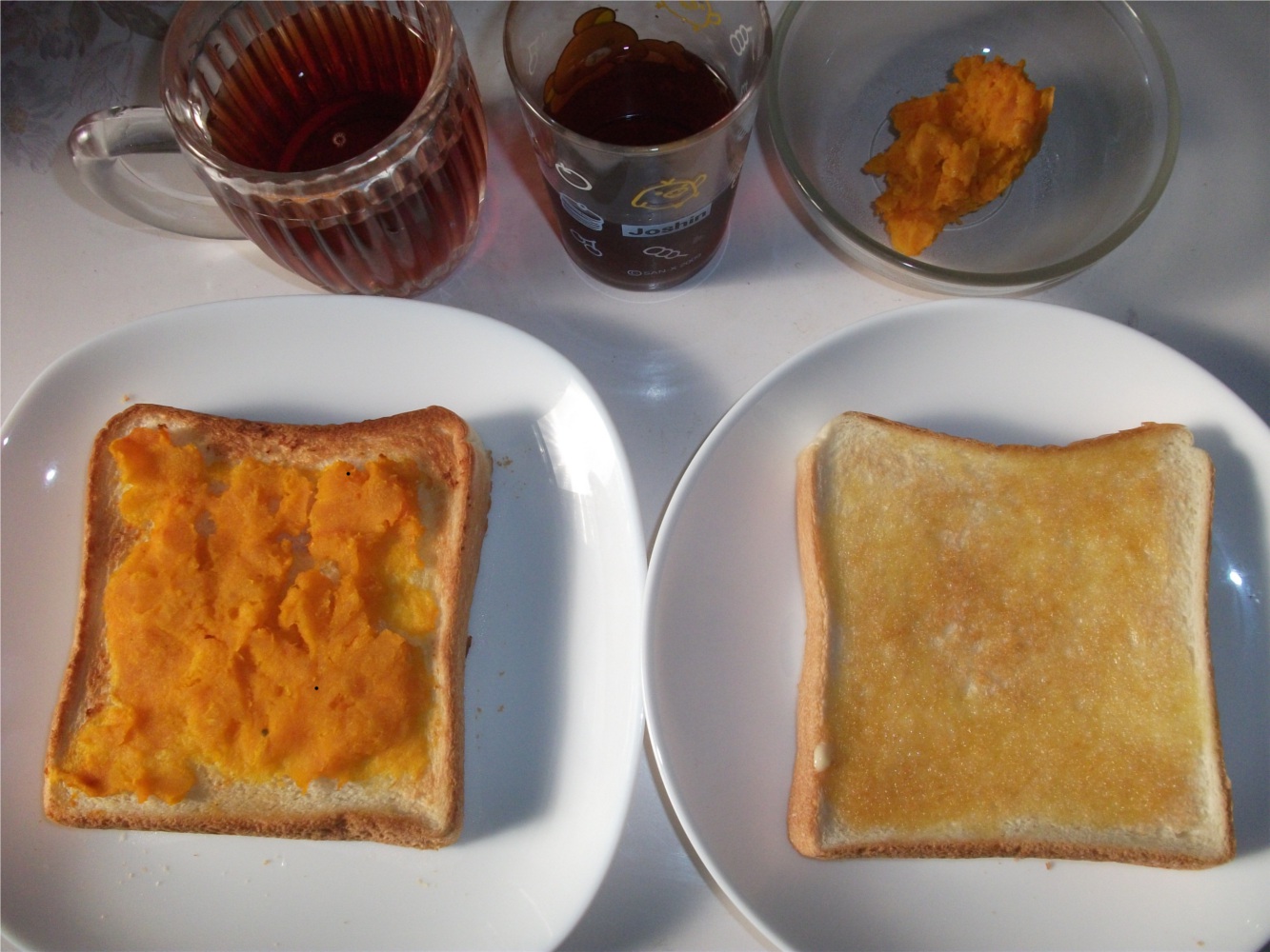 特別な理由はなく、突然思いついたかぼちゃ乗せトーストも普通のトーストも食べたかっただけ。