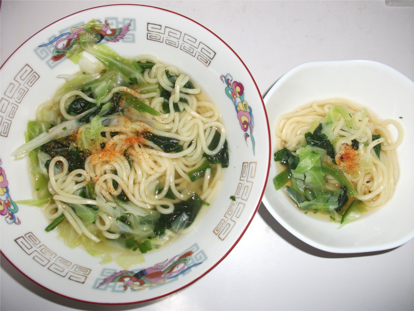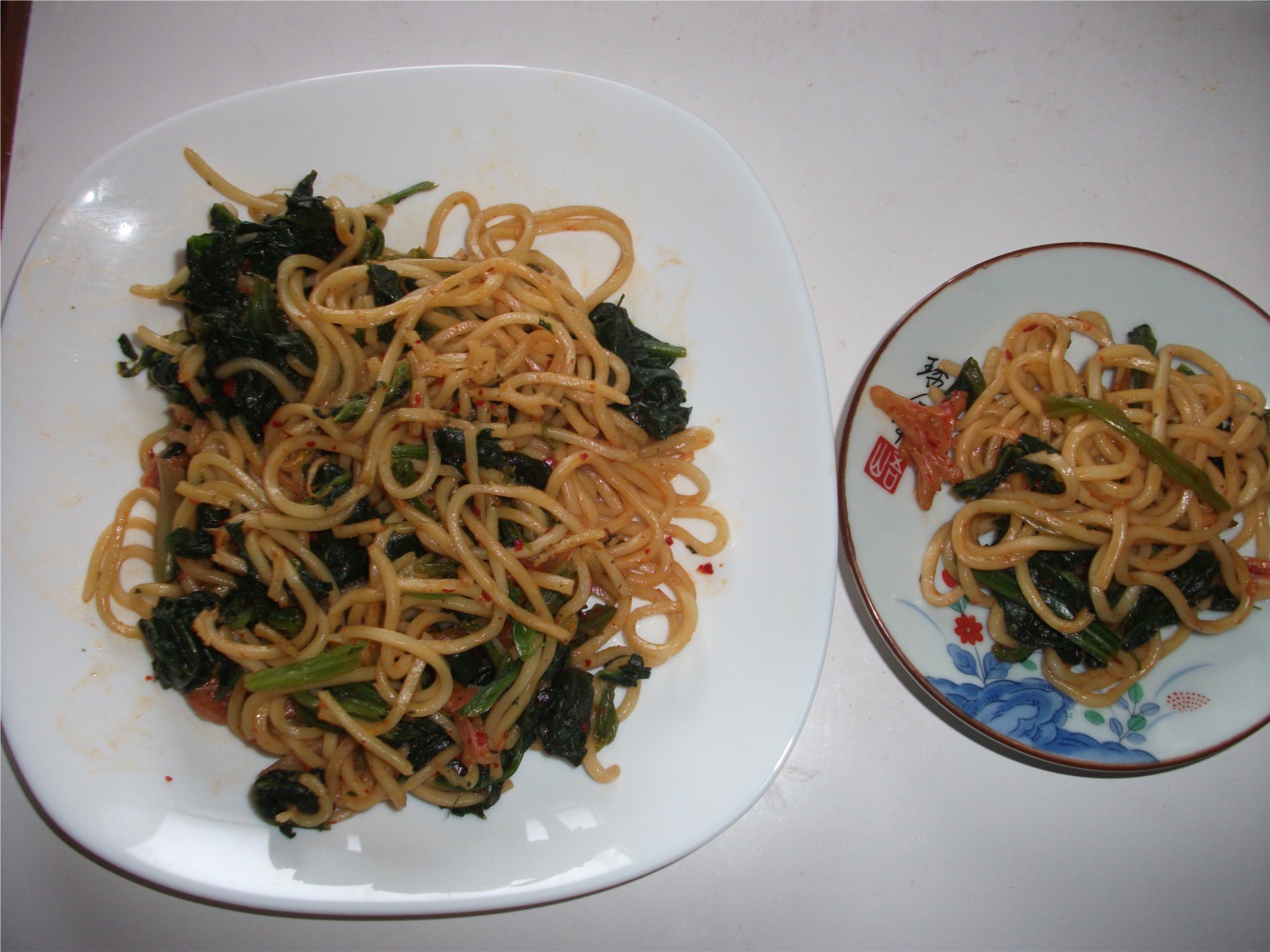昼ご飯は、ほうれん草とおばあちゃんの嫌いな「キムチ」入り焼きそばです。