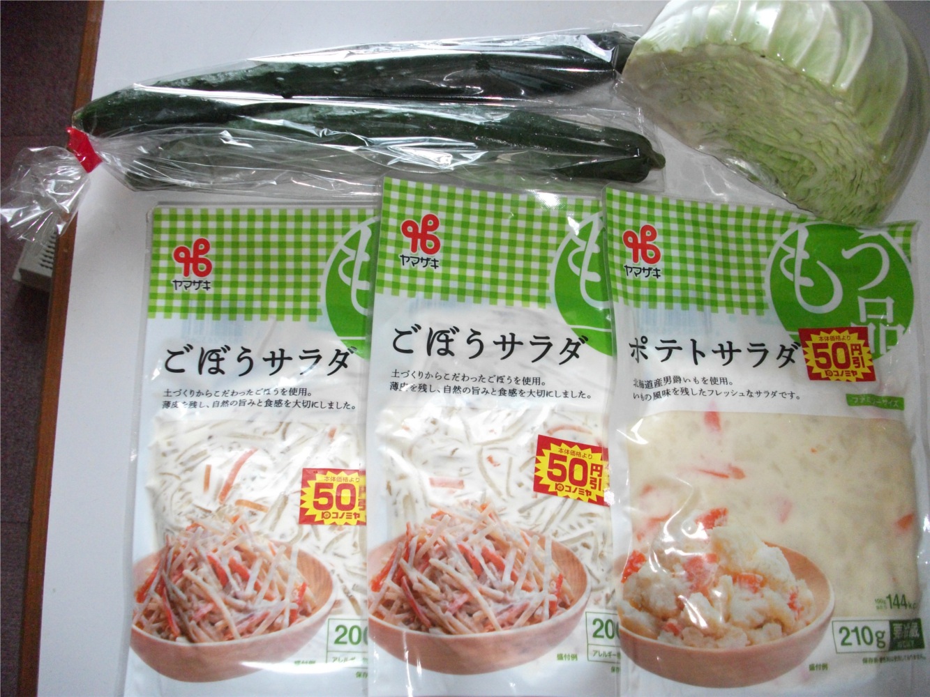 余計なもの買わなければ、キャベツ30円、きゅうり(2本)50円。