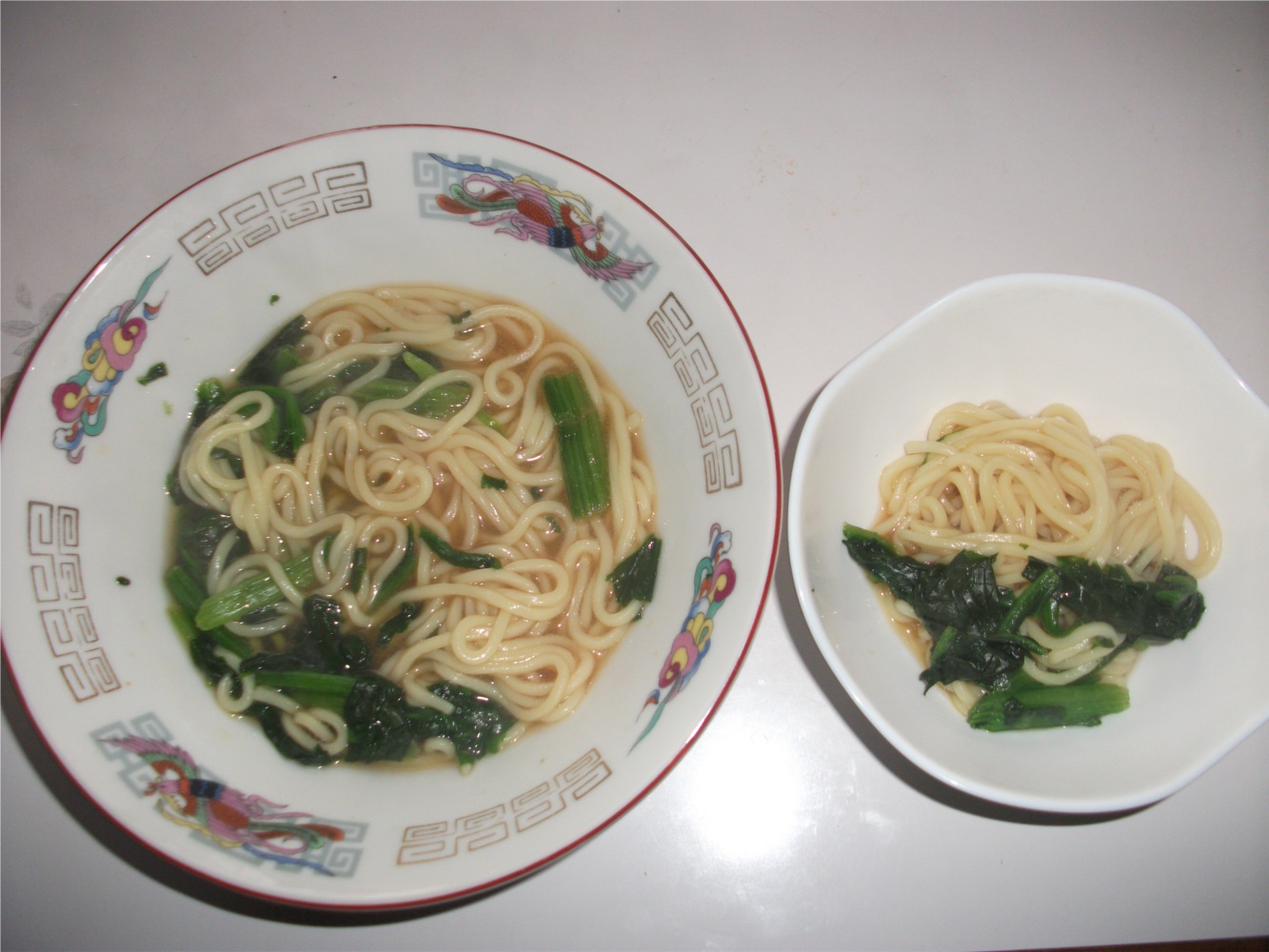 冷凍ほうれん草のみでラーメンを作ったが最後お湯を要らないと思って捨ててしまったので濃い目のスープになってしまい塩辛かった。
