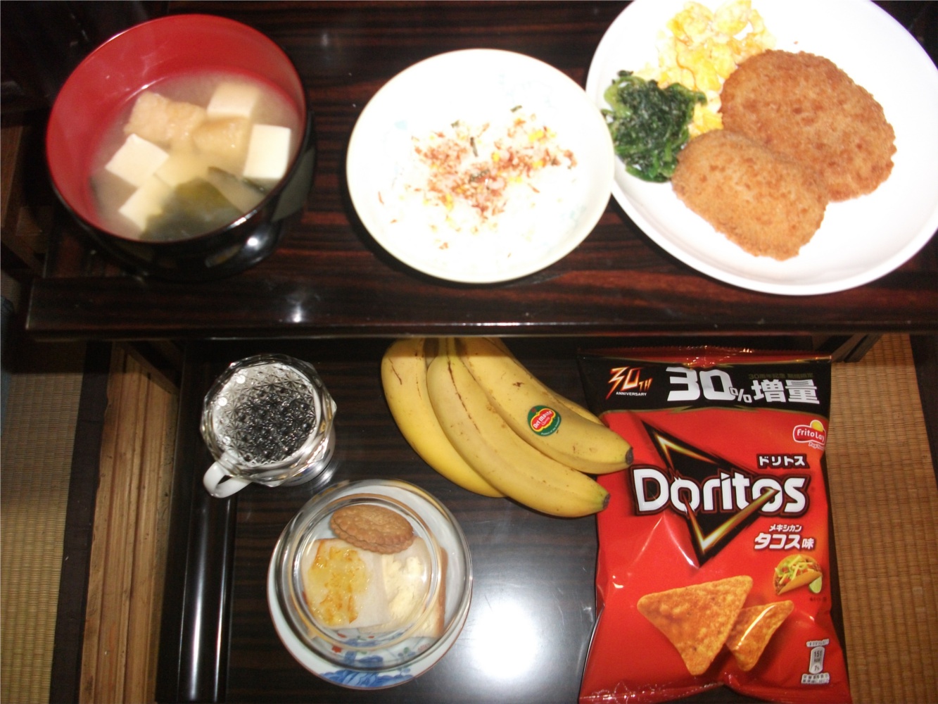 夕食時も、夜食にと思っていた供え分のコロッケ皿はそのまま残し、昼の残り物と菓子を夜食にした。