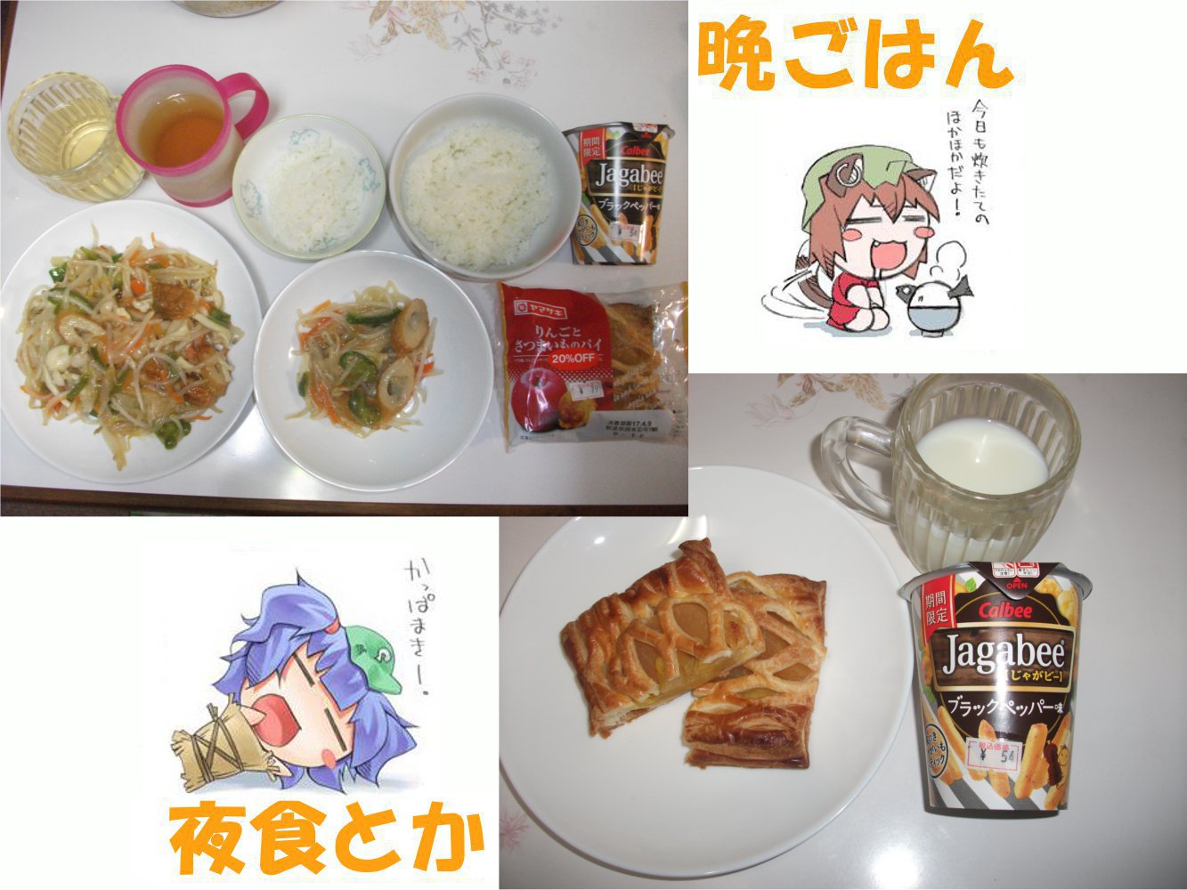 夕食時に、夜食にするものを一緒にお供えをしときました。