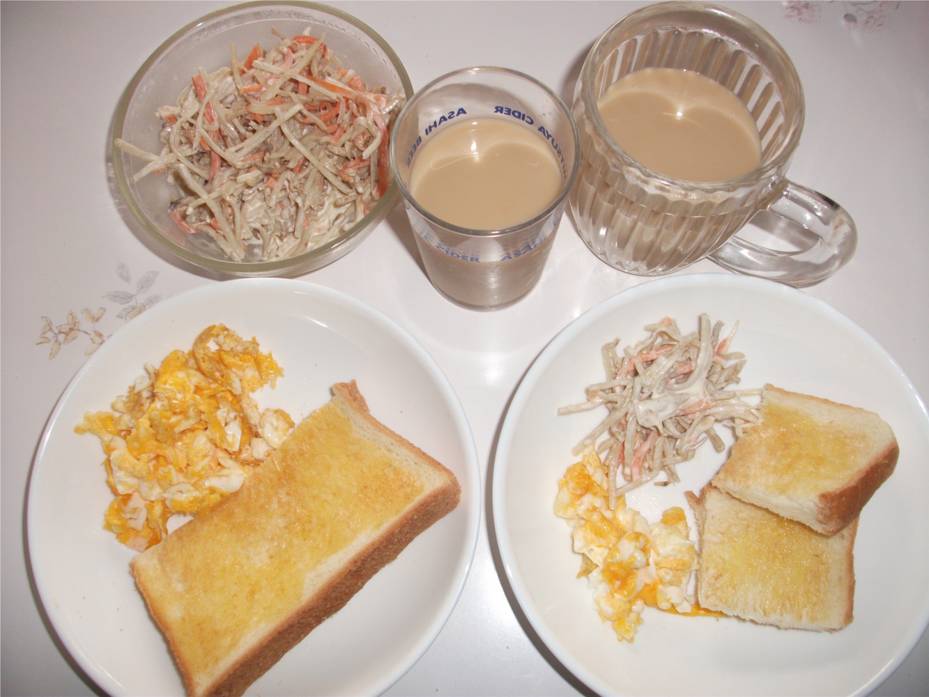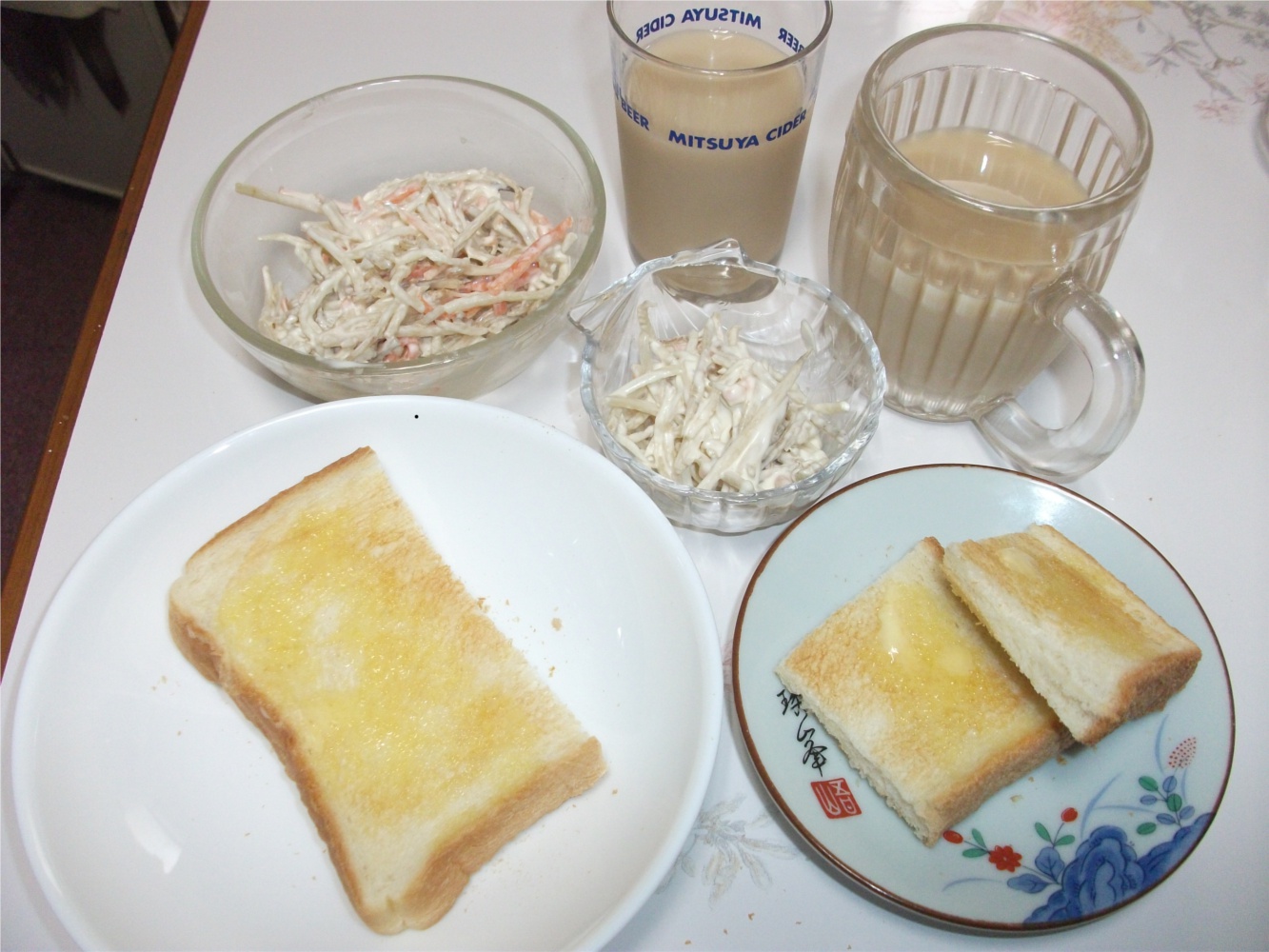 今朝はごぼうを食べました! お昼もそれらにタマゴが加わっただけです。