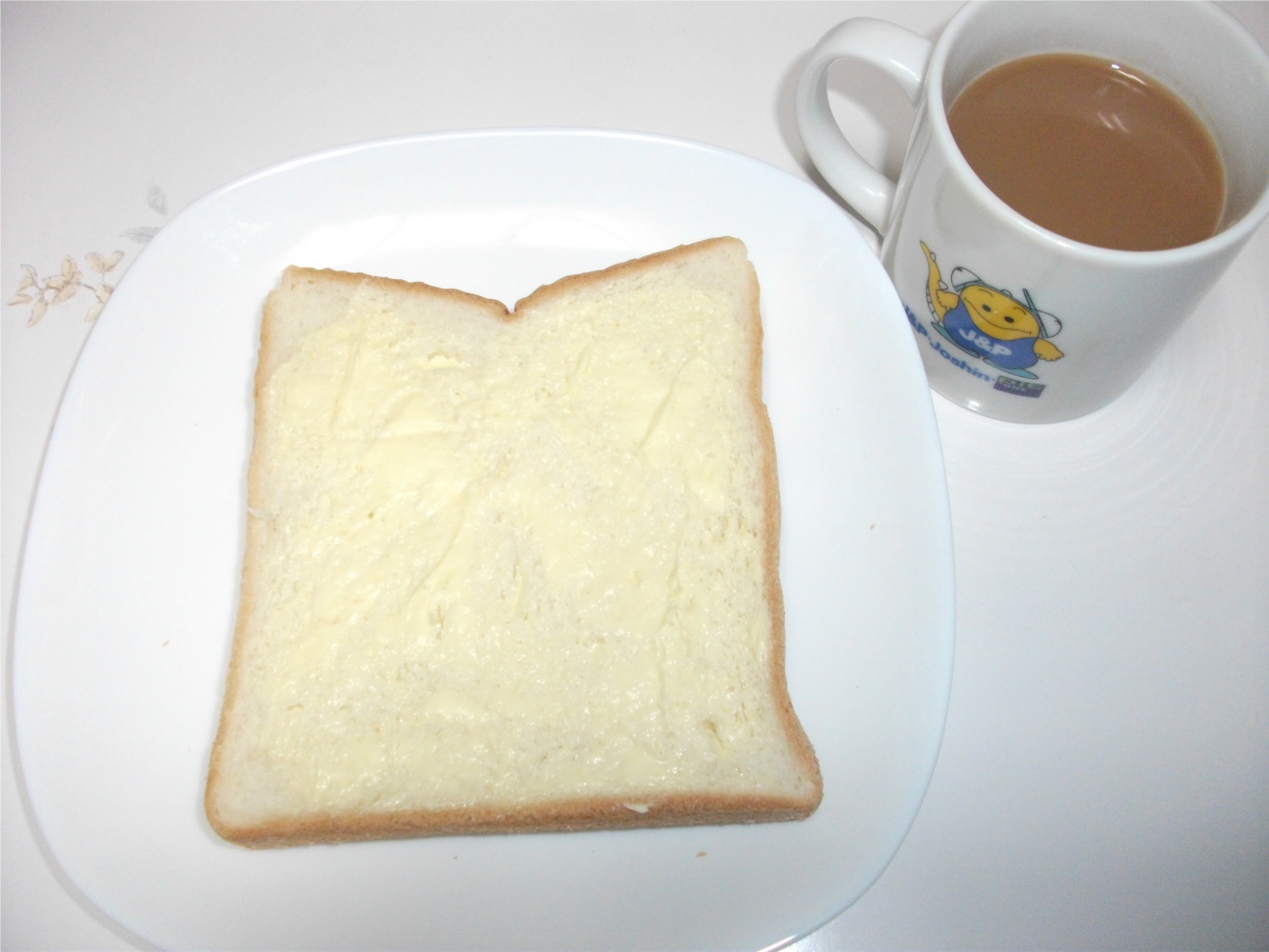 昼ご飯がお蕎麦だけだったので3時頃食パン食べる。 生食パンにマヨネーズ&ミルクティー