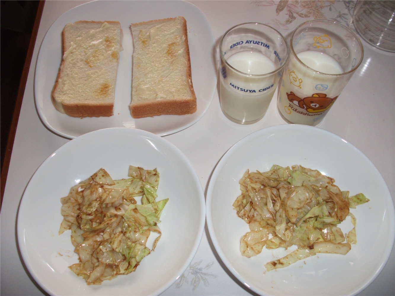 毎日「野菜、野菜」という事が頭にあって、とりあえずキャベツの炒め物。