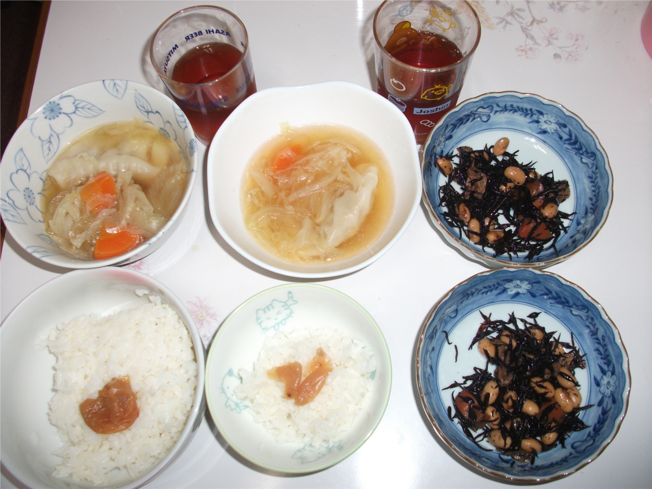 夕方まで寝ていたので、直ぐに手軽に食べれる野菜ものとして、キャベツ・玉ねぎ・ニンジン・餃子を中華スープで煮込みました。