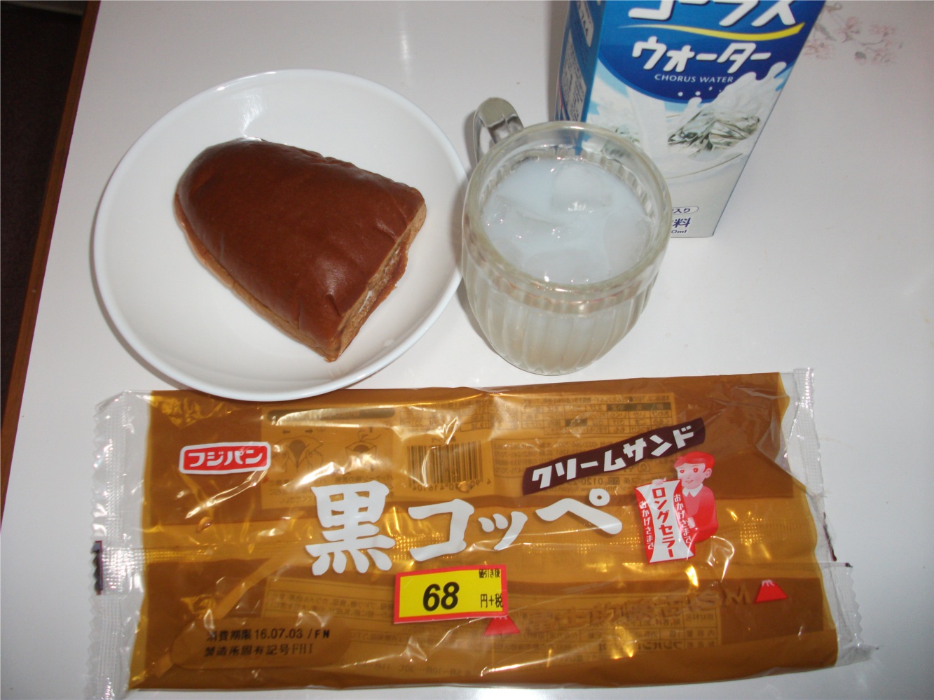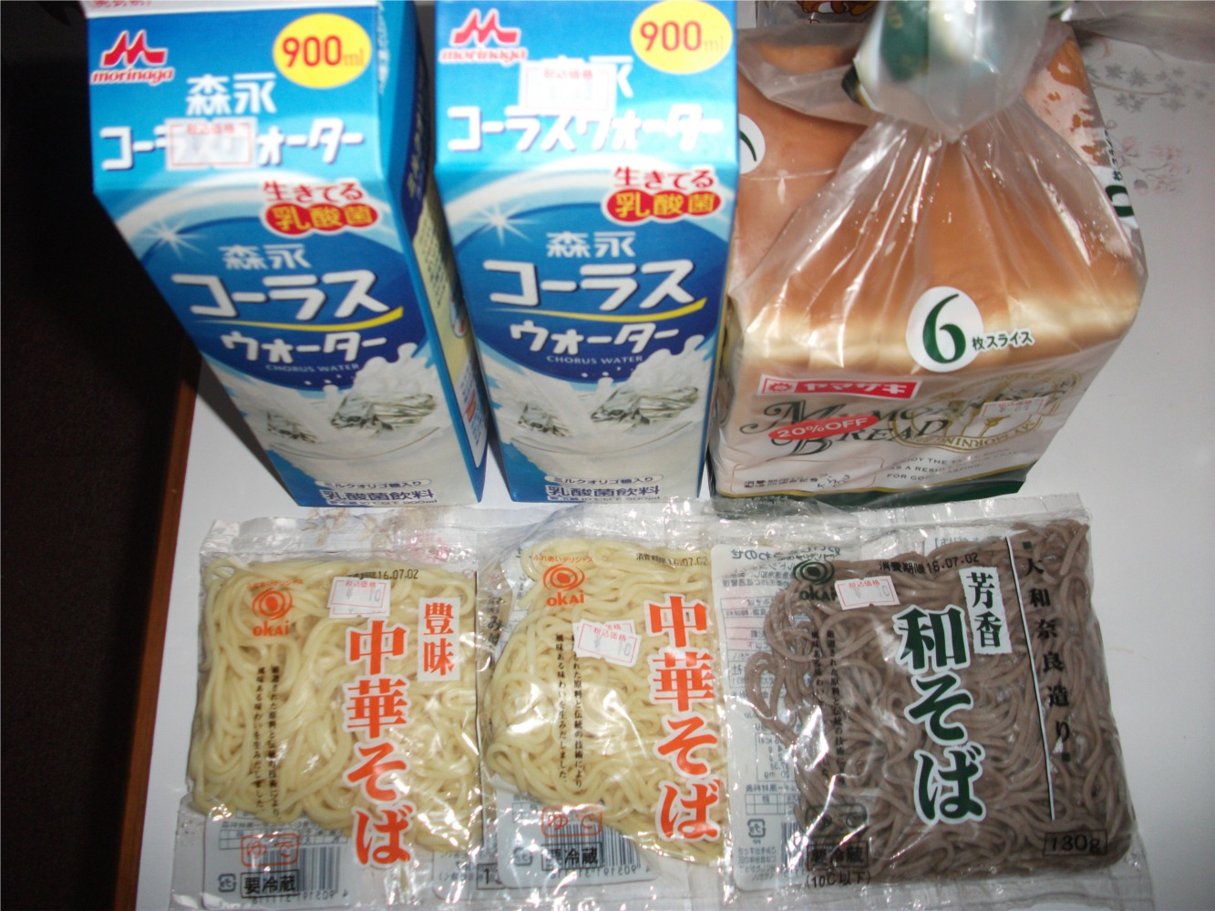 森永コーラスウォーター43円、食パン64円、中華・和そば各10円 計 税込180円
