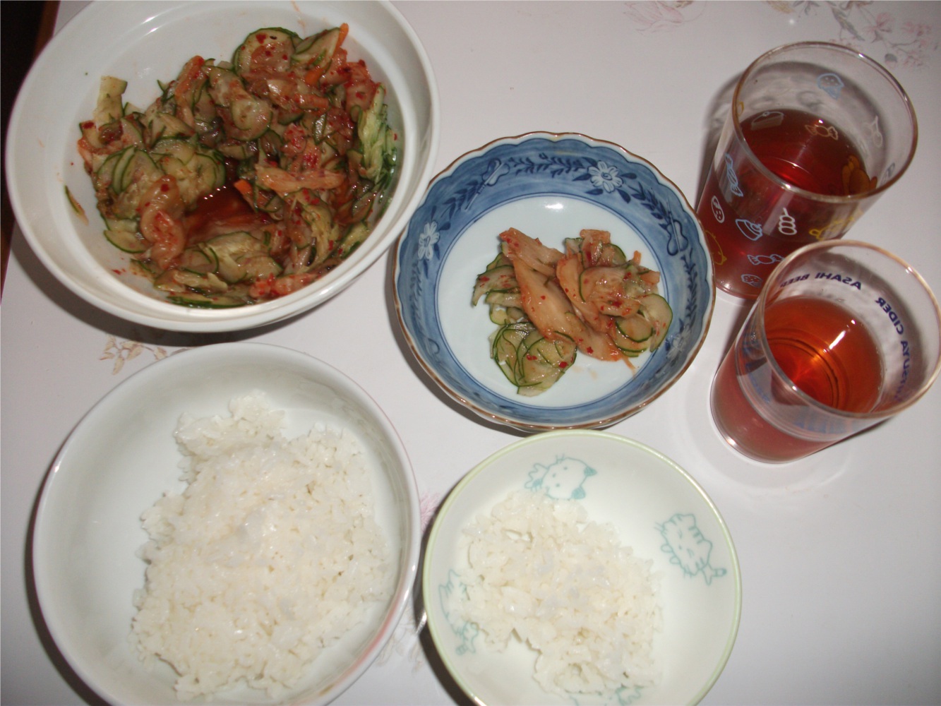 お昼はきちんと野菜を摂りましたよ。キムチだけでは辛くて食べれないのでキュウリを加えました。
