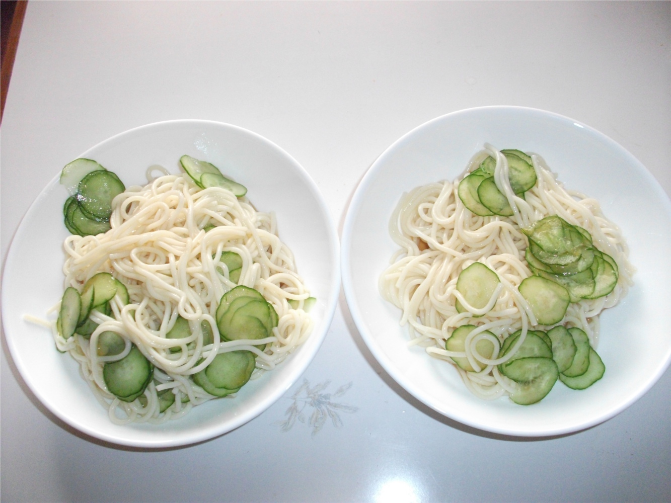 お昼は細麺スパゲティーを使ったそうめん。二皿目はしょうがをちょっと入れた。