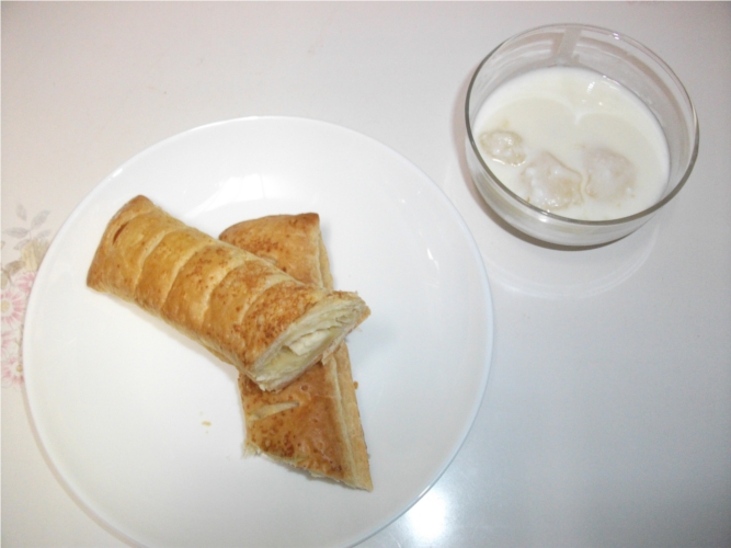 途中スーパーで菓子パンなど見に寄ったのですが全然良いのが見つからず、あまり気に入らないけど計200円くらいのパンを2個手に取った。