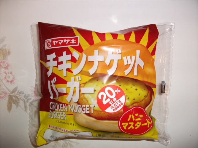 夕食はレトルトカレーにしましたが、具無しは頼りなくて「チキンナゲットバーガー」をおかずにカレーを食べました。