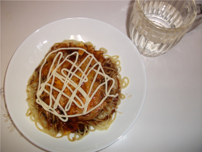 今日中に食べておきたかったので夜食も焼きそば。少しアレンジしてお好み焼き風にしてみた。