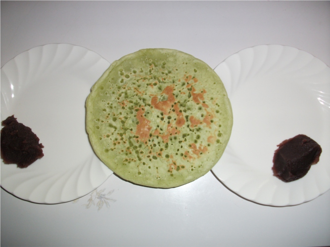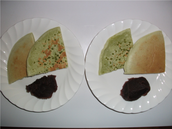 「抹茶風味パンケーキこし餡添え」作ってきた。