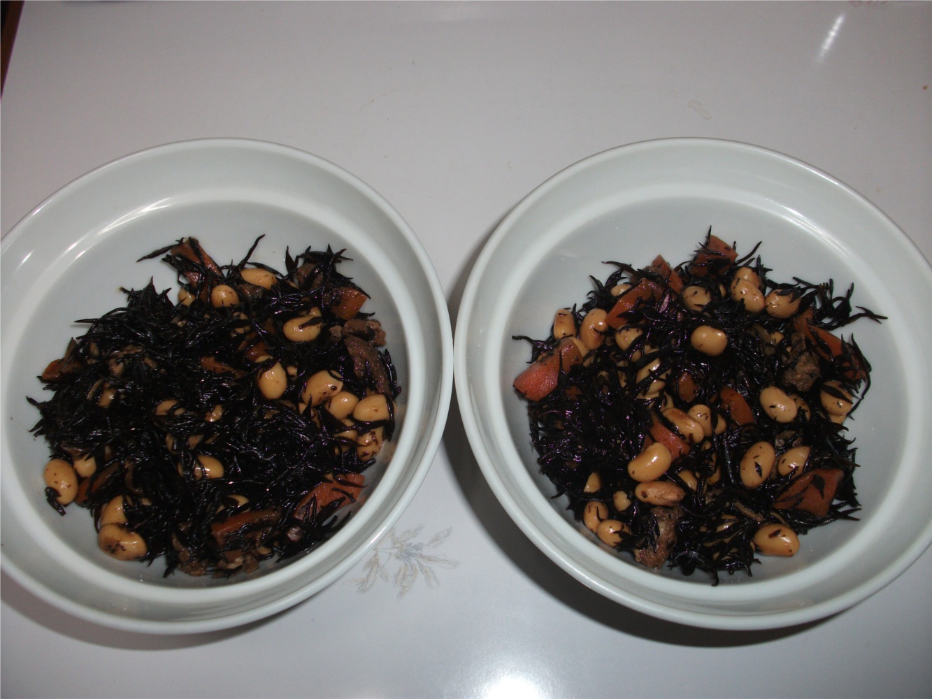 夕方、豆ひじきを作った。揚げ、人参、豆、ひじき。