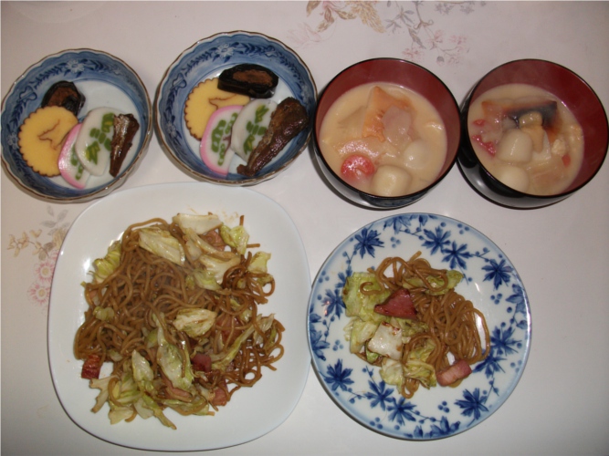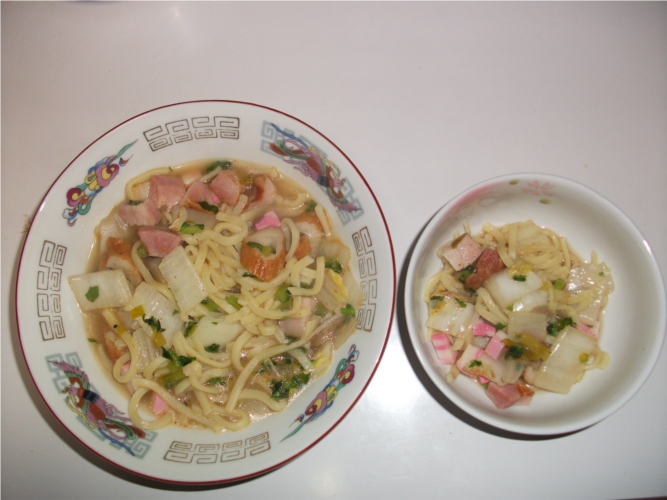ちゃんぽん・鍋用太麺と、年越し蕎麦の残り汁があったので、今夜はちゃんぽんを作ってみた。