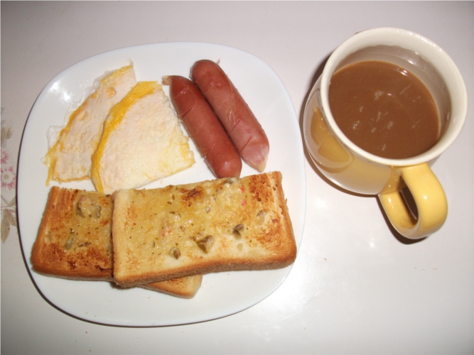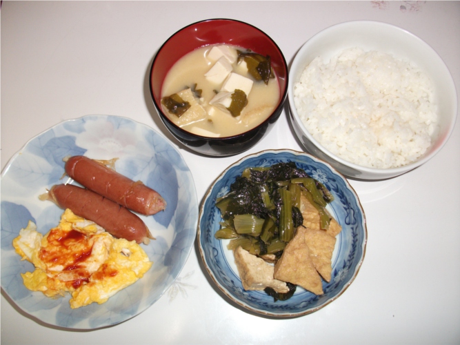 晩ご飯は、昼の分に卵とウインナーを足しただけだ。その代わり漬物を取った。白ご飯もちょっと多め。