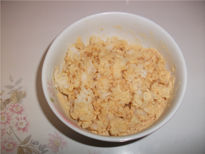 夜食の白ご飯は前回に炊いた残りで「甘いきな粉ごはん」にした。
