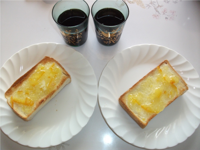 マーマレードは焼けて飴状になるかと思ったが、乗せすぎて普段との違いがよくわからなかった。