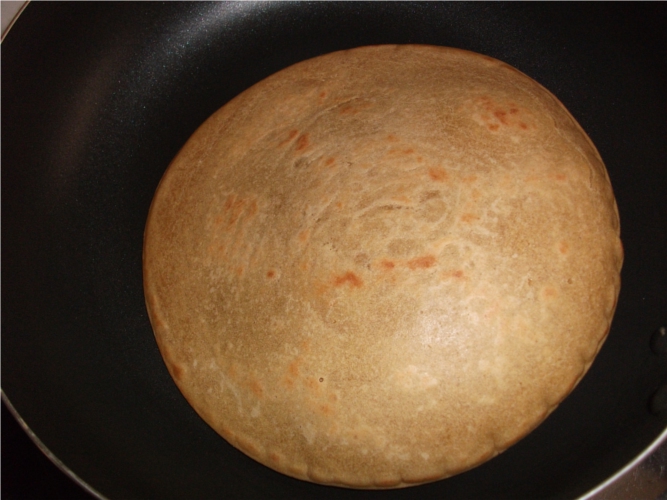 クレープより少し厚めくらいのパンケーキを作っているといつもより余計に膨らみます。