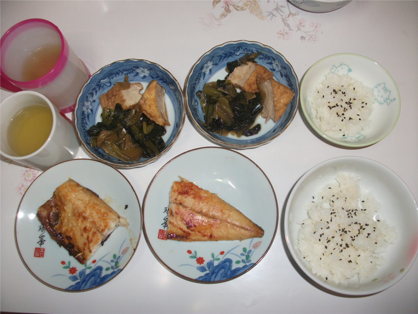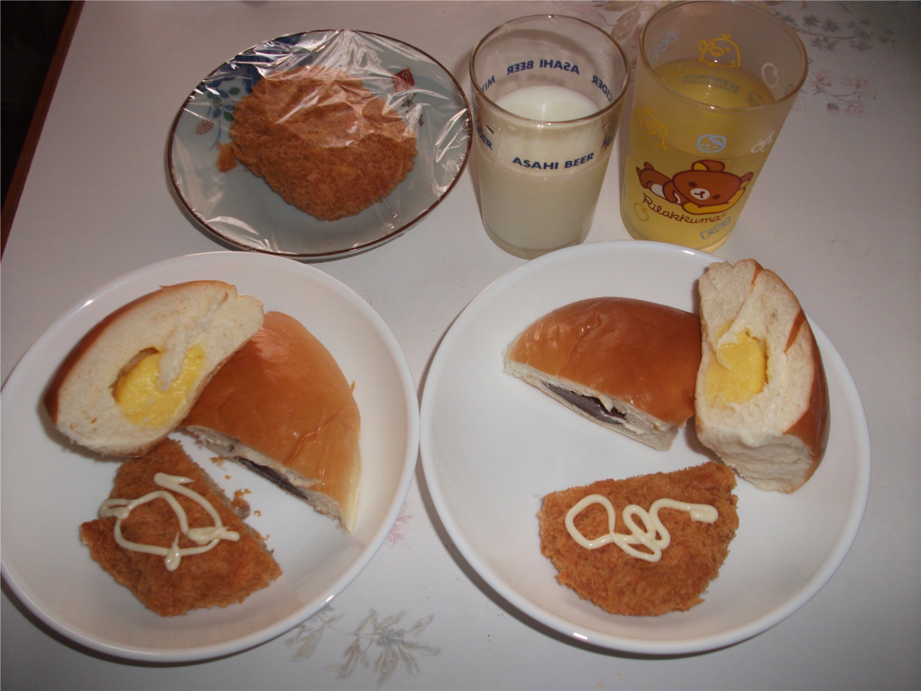 久々に食べる小松菜と魚。あん入りパンもね。