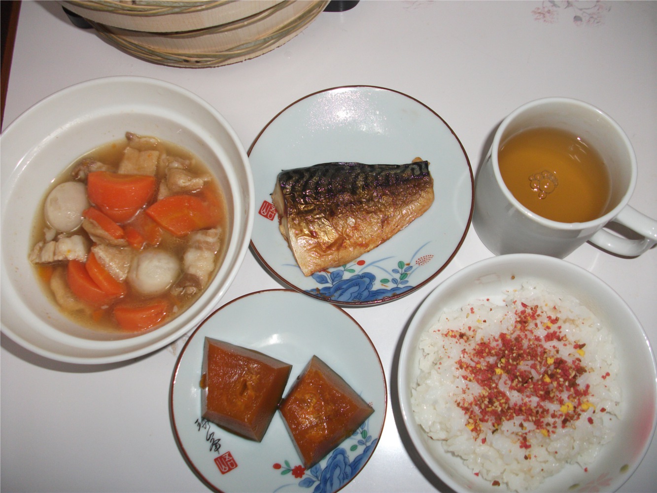 11月15日(火曜日)の朝食、昼食(スパゲティ麺を使ったうどん)、夕食