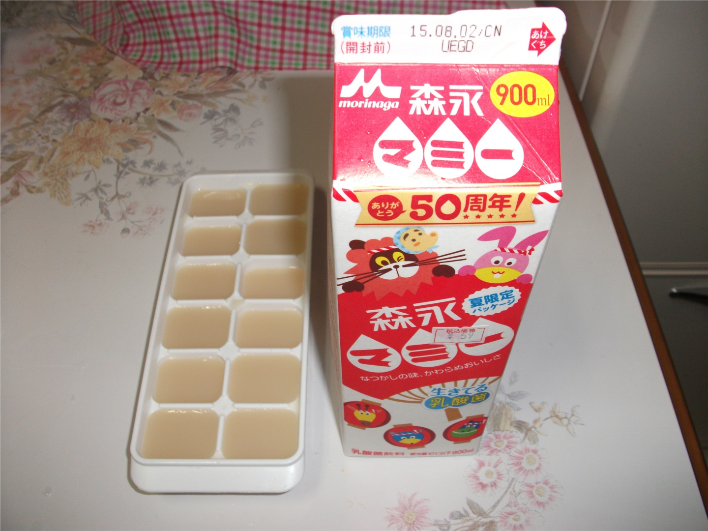 普通じゃ期限内に飲みきれませんが、冷凍保存で一口サイズのシャーベットにすれば安くて長持ち簡易シャーベット (^ω^)