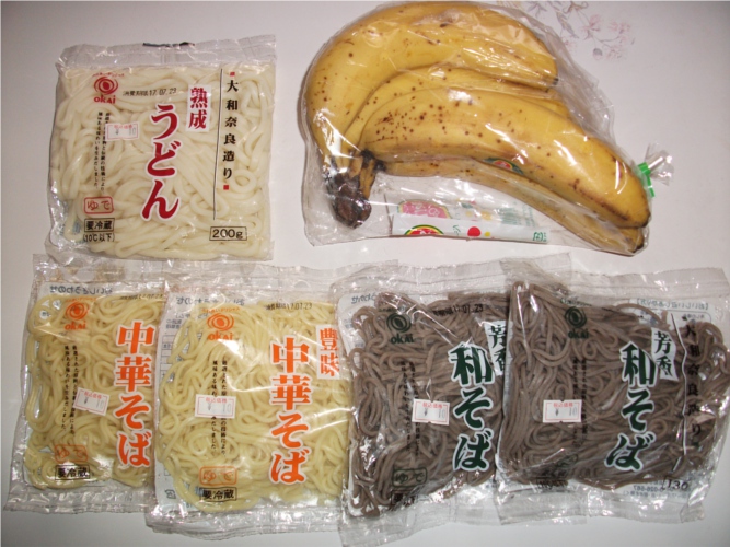 10円麺が出てる…。バナナ半額52円…。特価カップ麺とお菓子はひとり2個まで。